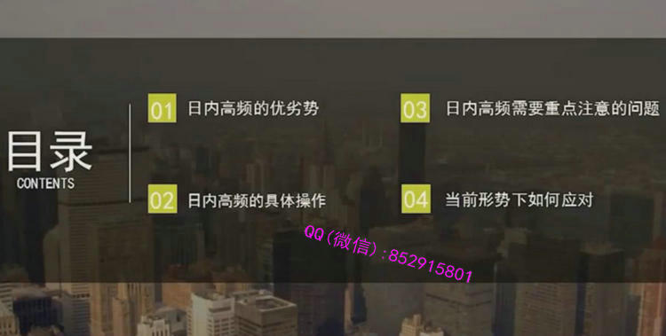 吴平,网名“一缕青烟”,2007年毕业于中南财经政法大学,2009年开始接触期货,经历数次爆仓后离开市场,2010年重新回归,从一张玉米开始做到炒单盈利,到炒单资管户时代成为国内某品种一哥,实现上万倍盈利。 课程目录: 课时1:日内高频优劣势与品种选择 课时2:日内高频如何开仓?盘口、K线、关键价位、品种联动、持仓走势、成交量解读 课时3:软件设置与实盘演示讲解 课时4:日内高频需要重点注意的几个问题 课时5:如何提高交易水平? 课时6:当前高手续费形势下如何应对? 课时7:学员问题提问部分
