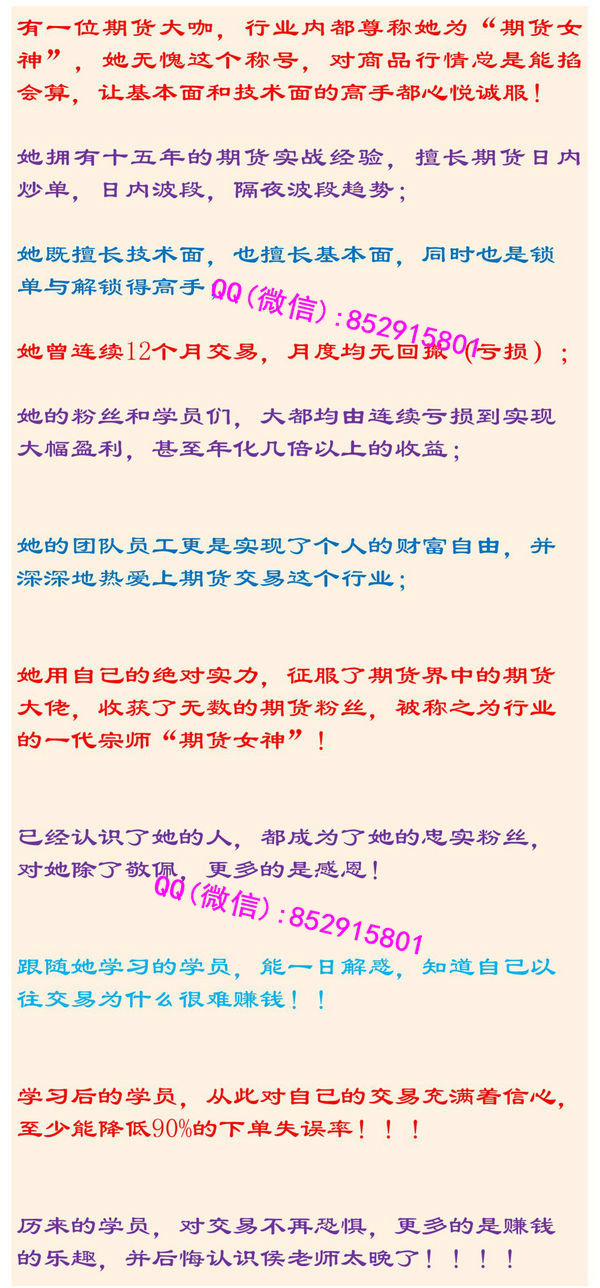 首席操盘手、上海鑫羡资产总裁舍德教育特聘讲师国际金融交易师研究院院长上海财大特聘讲师上海复旦求是学院特聘讲师行知创客国际教育创新发展研究院院长连续12个月月度无回撤团队员工实现了个人的财务自由现任多家金融机构和实体企业长期顾问,并实现稳定盈利粉丝和学员们的财务状态,几乎都由连年亏损变成了大幅盈利职业期货操盘手训练基地首席导师,业内称之为“期货女神'国内最受欢迎的顶尖期货培训团队训练导师之一交易中您是否遇到过这些问题.常亏,不常赚?总是赚小钱,亏大钱?行情看对了,但没做到?进场点位把握不准,进去后容易被套?研究了很多技术分析指标,却总是滞后?知道K线图的过去,却读不懂他的未来?没有找到稳定的盈利模式?害怕交易,进场后经常心里没底?完整的期货操作交易系统,一次参训,一生受益!如何看形态?如何抓住趋势?如何让亏损单盈利出来?选品种分析势开平仓\资金管理\止损止盈\复盘与计划训练分析看盘能力、正确的交易理念、大势、选择品种、十大模型理念、步骤、模型、技术策略、止损止盈等综合实战训练课程内容1.训练识别开盘:通过开盘的盘面情况,判断出当天的不同走势,灵活运用相应的应对策略。2.训练选品种:成功的选择一个好品种 ,日内小波段操作事半功倍,可以大大的提高成功率,提高盈亏比。通过学习选择品种的条件方法,改掉固有的思维,在盘中不断训练,选择成功率高盈亏比大的品种。同样的行情、时间、资金仓位,有些品种不赚钱甚至还亏损,而有些品种却可以赚大利润。所以选择很重要,选择正确赚大利润,选择错误赚小利润,甚至不赚钱。3.训练开仓时机:不同的行情,用不同的策略应对,从实战中总结的高成功率与高盈亏比的技术模型。每个人可以根据自己的实际情况,寻找到有利的进场时机。4.训练止损:正确的止损方式(不止损一-次就大亏,频繁止损也是慢慢亏的结局。很多人很多时候,因为止损设置的不合理,导致看对行情不赚钱。看错行情亏大钱的局面。所以合理正确的止损是一个非常重要的技巧。如何做到小止损大盈利;如何在看对行情而设置正确合适的止损价不被行情波动止损掉;如何在看错行情而小亏的止损)5.训练止盈:日内小波段的止盈策略(很多交易者,有时候看对行情没赚钱,经常出现出局早了,大利润没吃到,利润太小。或者出现单子持有过头了,止盈太晚,利润回撤太大,甚至盈利的单子最后变成了亏损出局。所以如何扩大利润,也是交易最关键的一环)。培训视频截图: