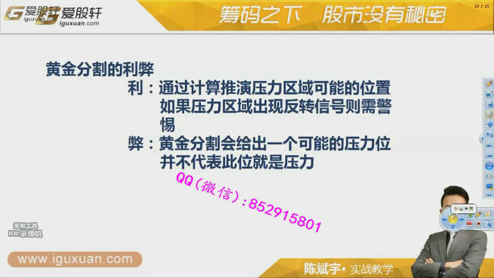 股市的一切,都跟“人”有关。而“筹码追踪法”,就是在追踪对股市或股价具有关键影响力的“人”之动向。也因此;筹码追踪,被视为是在股市三大分析领域中最上层,领先于基本面分析及技术面分析。但可惜的是,市场上真正精通筹码追踪的高手并不多见,而其中愿意无私传授筹码追踪技巧的更是少之又少,陈斌宇老师便是难得一遇的筹码追踪高手之一。藉由筹码追踪术,陈斌宇老师屡次精准命中盘势波段转折,破解主力控盘手法,深入股价运作核心思维,因此媒体称之为「股市柯南」及「筹码大师」。藉由陈斌宇老师深入浅出生动活泼的教学,期让投资朋友轻松掌握主力动向,进而脱离小散行列迈向赢家之路,享受财富人生。全套共55集,含5集实战篇
