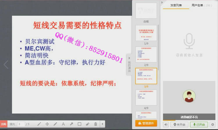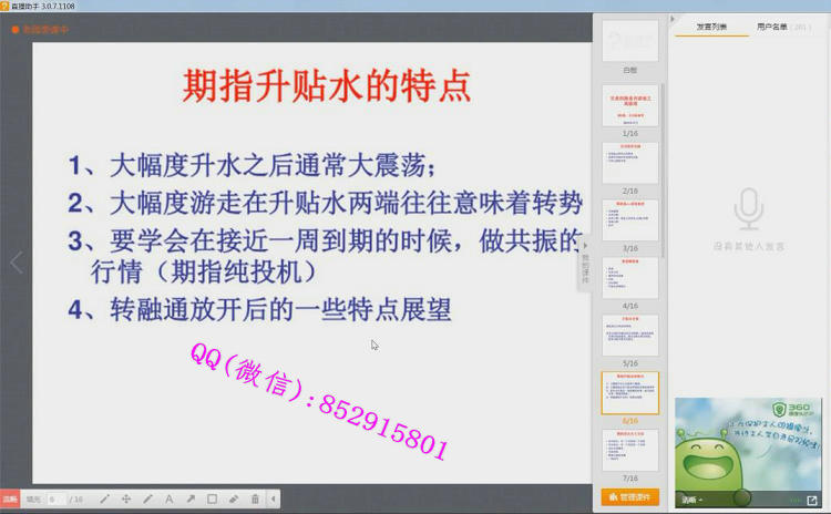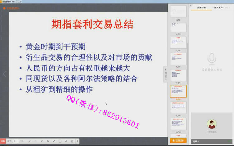 课程目录:第1讲:公开试听课第2讲:投机市场第3讲:认识你自己第4讲:止损第5讲:国内市场第6讲:读图第7讲:短线交易第8讲:K线形态第9讲:长线交易第10讲:交易体系第11讲:无风险套利第12讲:低风险套利第13讲:对冲交易第14讲:情绪和梦想视频截图: