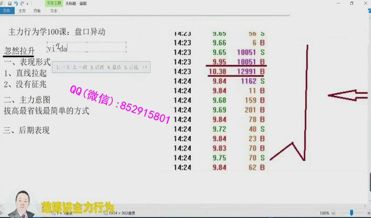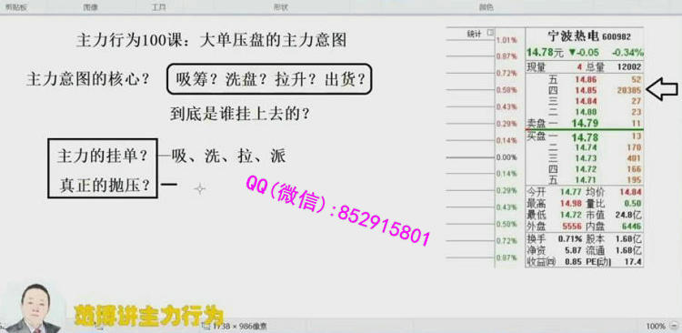 一个股票的上涨或者下跌,涉及到政治面、经济面、基本面、技术面等诸多因素,但是无可否认的是,任何一个真正强势上涨的股票,都是主力积极参与和运作的结果。如何在盘中发现主力行为,洞察主力意图,跟随主力步伐,是我们做好股票的关键。《范老师—主力行为学》,从职业投资者的角度阐述了主力在盘中操盘的技术细节及在盘面留下的动态痕迹,让你在临盘过程中通过观察主力的行为来看清每一个盘面现象背后的真想。本产品来自于范老师十余年的操盘经验和实践积累,颠覆传统的“看图说话”类的技术分析,更非百度抄袭模仿的泛泛之作。范老师著有《股市主力行为学》、《股市市场心理学》、《职业股民训练》、《开盘半小时判断全天走势》、《盘口藏宝图》、《小红旗》、《黑太阳》等等一系列大型股市技术革命性著作。课程目录:第01集 主力行为学100课:成交明细的基本原理第02集 主力行为学100课:成交明细的潜规则第03集 主力行为学100课:成交明细的详解第04集 主力行为学100课:大单的5个界定标准第05集 主力行为学100课:5种能识别主力行为的大单第06集 主力行为学100课:主力资金净入流详解第07集 主力行为学100课:识破假资金净入流第08集 主力行为学100课:北向资金是个啥第09集 主力行为学100课:聪明的外资这些年是亏是赚?第10集 主力行为学100课:通过成交明细看主力行为第11集 主力行为学100课:听完这个段子你就更明白主力套路第12集 主力行为学100课:规则更新你还不知道?第13集 主力行为学100课:主力行为之“空中成交”操盘详解第14集 主力行为学100课:股价拉起来,为什么散户总是跟不上第15集 主力行为学100课:揭秘主力对敲意图第16集 主力行为学100课:主力对敲”套路很深“第17集 主力行为学100课:大单压盘不弯腰,是洗盘还是出货第18集 主力行为学100课:看到压单,想法决定出路第19集 主力行为学100课:主力用特巨大的大单压盘的真正意图第20集 主力行为学100课:如何识别主力巨单压盘是洗盘还是出货第21集 主力行为学100课:主力的这种操盘手法,不要上当第22集 主力行为学100课:干货分享,主力的这个方法控盘很实用第23集 主力行为学100课:这种压单是主力铁了心要打压股价第24集 主力行为学100课:主力这样的挂单,就是真正的抛压第25集 主力行为学100课:这种挂单是真正的抛压,散户别去接盘第26集 主力行为学100课:买卖五档中暗藏玄机第27集 主力行为学100课:主力现身的痕迹,散户应该这样操作第28集 主力行为学100课:如何识别主力真假护盘第29集 主力行为学100课:大盘跳水,牛气十足的庄家如何护盘第30集 主力行为学100课:给你拆解主力高明的护盘手段第31集 主力行为学100课:看清主力夹板挂单目的,跟紧主力操作步伐第32集 主力行为学100课:采用这种挂单方式,主力不想带你玩第33集 主力行为学100课:成交量的常规运用第34集 主力行为学100课:切换这个工具就能看懂主力是否跑了第35集 主力行为学100课:运用换手率选到好票第36集 主力行为学100课:揭秘一个被主力围剿的工具第37集 主力行为学100课:终于找到成交量的真谛第38集 主力行为学100课:盘中集中放量,我们该如何操作第39集 主力行为学100课:看懂这个量峰,你能抓住很多好机会第40集 主力行为学100课:揭穿主力收割的套路第41集 主力行为学100课:看量峰判断走抛的好方法第42集 主力行为学100课:看懂这4个时间段的成交量判断一只票当天的好坏第43集 主力行为学100课:利用集合竞价规则,提高选股成功率第44集 主力行为学100课:集合竞价时主力操盘的套路第45集 主力行为学100课:这种挂单毫无作用,别做无用功第46集 主力行为学100课:看懂主力集合竞价,提高操作水平第47集 主力行为学100课:散户如何从高开中选到好票第48集 主力行为学100课:记住4个集合竞价常识,你水平飙升第49集 主力行为学100课:特别留意早上高开3%到5%的票第50集 主力行为学100课:散户需牢记集合竞价选票的原则第51集 主力行为学100课:散户该如何应该低开的票第52集 主力行为学100课:老司机常用的战法,全天分6个时段第53集 主力行为学100课:早盘攻击上涨攻如何应对第54集 主力行为学100课:散户需走出的学习误区第55集 主力行为学100课:早上这样的票经常是坑,谨慎追第56集 主力行为学100课:老司机教你两个卖在更好价格的技巧第57集 主力行为学100课:用谈恋爱的方式做大阴线第58集 主力行为学100课:教你一个非常实用的选票方法第59集 主力行为学100课:这样的盘口容易涨第60集 主力行为学100课:这样走的票直接扔了,别浪费时间第61集 主力行为学100课:散户一定要会看时间结构第62集 主力行为学100课:让你看盘水平飙升的看盘方法第63集 主力行为学100课:尾盘看盘绝技第64集 主力行为学100课:这样的横盘是机会,要好好珍惜第65集 主力行为学100课:这样横盘的票容易跌,有票尽快卖第66集 主力行为学100课:大盘下跌时,这样走势的票要珍惜第67集 主力行为学100课:横盘时,成交量这种形态大概率要拉升第68集 主力行为学100课:下跌时,出现这几种情况就不妙了第69集 主力行为学100课:A股是跳水冠军,发生在这个位置直接走人第70集 主力行为学100课:均线应对下跌的正确使用方法......第95集 主力行为学100课:K线图环境第96集 主力行为学100课:K线的周期第97集 主力行为学100课:大阳线博弈第98集 主力行为学100课:详解大阳博弈第99集 主