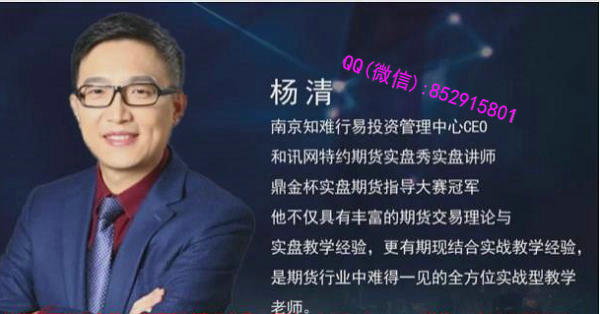 杨清,鼎金杯实盘期货指导大赛冠军,和讯网《期货实盘秀》特约嘉宾,国内12家期货公司特约实战讲师。南京知难行易投资管理中心CEO,紫荆花杯环球金融衍生品超级赛指导老师。 系统标准课程包含: 一、开仓多单的标准,开仓空单的标准。 二、开仓后具体止损位置,找止损位标准。 三、如何制定以损定量的资金管理标准。 四、根据周期大小不同制定止盈的标准。 五、根据条件依据什么都不做的休息标准。 视频截图: