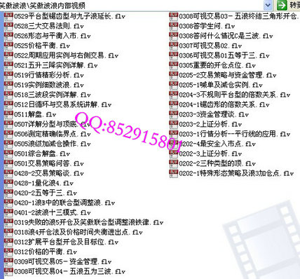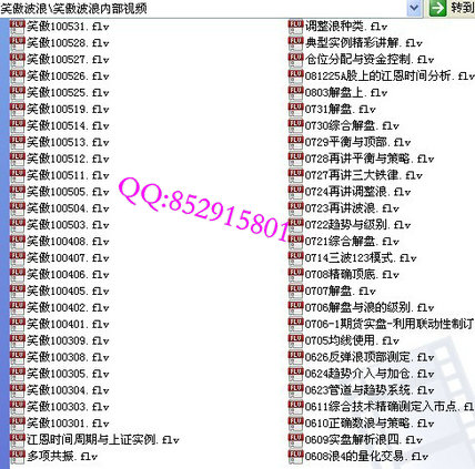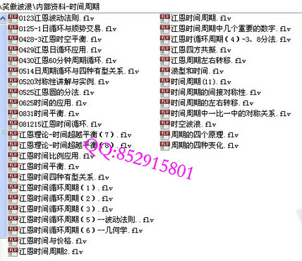 本套教程是收费教程,内容涉及股市、外汇、期货等,主讲波浪理论、 江恩理论、 时间周期及每日讲解,有16G多。内容如下):
