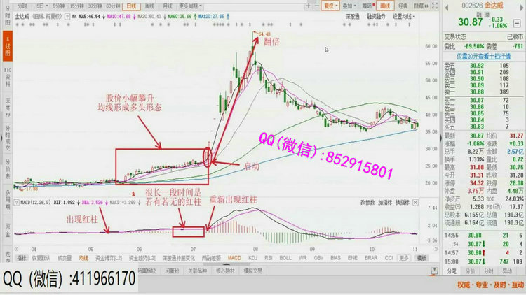 课程目录:前言:在这里你能学到什么第一讲:关于EMA,你需要知道的含义和用法第二讲:认识DIFF第三讲:DEA和DIFF的三种关系(上)第四讲:DEA和DIFF的三种关系(下)第五讲:MACD的原理和计算第六讲:MACD指标的一般研判标准第七讲:MACD指标研判的四大核心第八讲:MACD的背离(上)第九讲:MACD的背离(下)第十讲:MACD指标的四个区域第十一讲:短线15分钟MACD+KDJ第十二讲:60分钟MACD的选股技巧第十三讲:20日均线和MACD组合战法第十四讲:60日线+MACD组合买卖战法第十五讲:MACD二次翻红买入点第十六讲:红绿柱抄底逃顶法第十七讲:MACD常见的买入形态(上)第十八讲:MACD常见的买入形态(下)第十九讲:MACD三种零轴线附近“黄金交叉”第二十讲:MACD的黄金搭档KDJ(上)第二十一讲:MACD的黄金搭档KDJ(中)第二十二讲:MACD的黄金搭档KDJ(下)第二十三讲:MACD的黄金搭档BOLL(上)第二十四讲:MACD的黄金搭档BOLL(下)第二十五讲:MACD寻黑马(上)第二十六讲:MACD擒黑马(下)第二十七讲:MACD挑选大牛股第二十八讲:捕捉主升浪第二十九讲:周线MACD技战术分析视频截图: