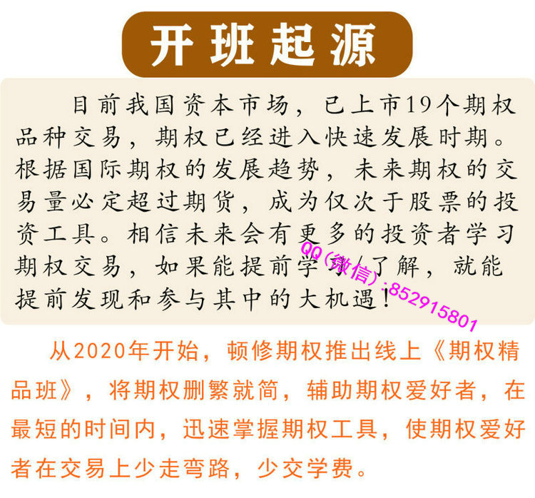 目前我国资本市场,已上市19个期权品种交易,期权已经进入快速发展时期。根据国际期权的发展趋势,未来期权的交易量必定超过期货,成为仅次于股票的投资工具。相信未来会有更多的投资者学习期权交易,如果能提前学习/了解,就能提前发现和参与其中的大机遇!