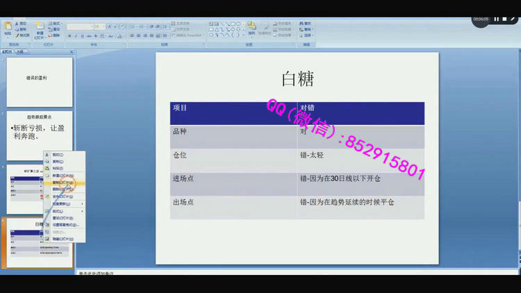 个人交易心得:期货投资应该是事业,而不是短期暴力的赌博工具。课程目录:1前言2.正确的盈利(铁矿第一波)3.正确的盈利(铁矿+焦炭)4.正确的盈利(白糖)5.正确的盈利(pp)6错误的盈利(铁矿——趋势跟踪的要点)7错误的盈利(白糖——错误的盈利会有什么影响)8正确的亏损(热卷)9正确的亏损(沥青)10错误的亏损(沥青)11总结视频截图: